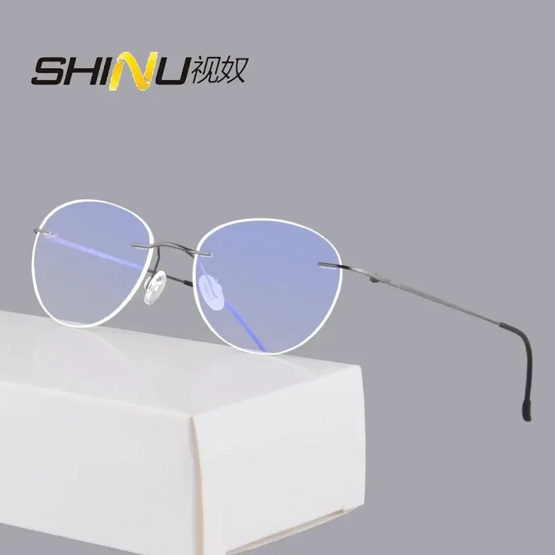 titanium rimless glasses women pure titanium frames for ladies blue coating blue cut computer glasses prescription frame only